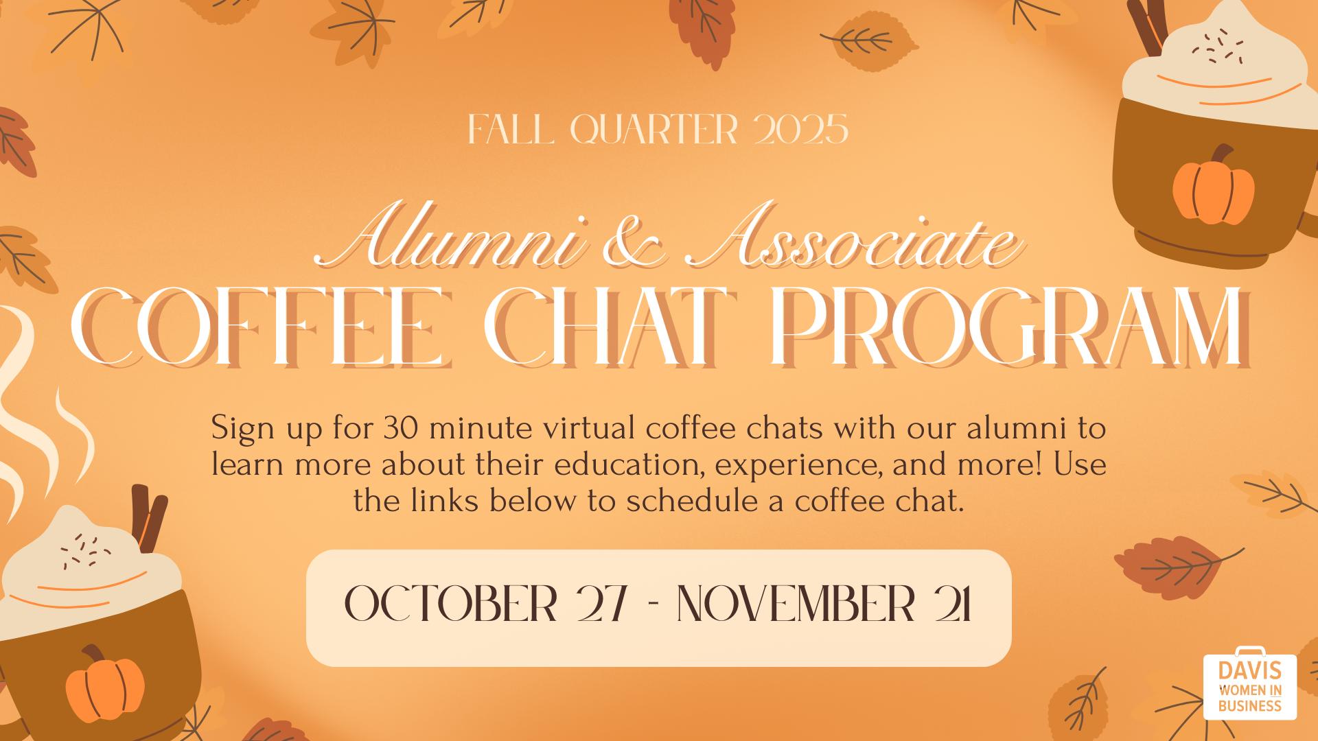Sign up for a 30-minute virtual coffee chat with our amazing alumni starting October 27th. Learn about their career journey, time in DWIB, or anything else!