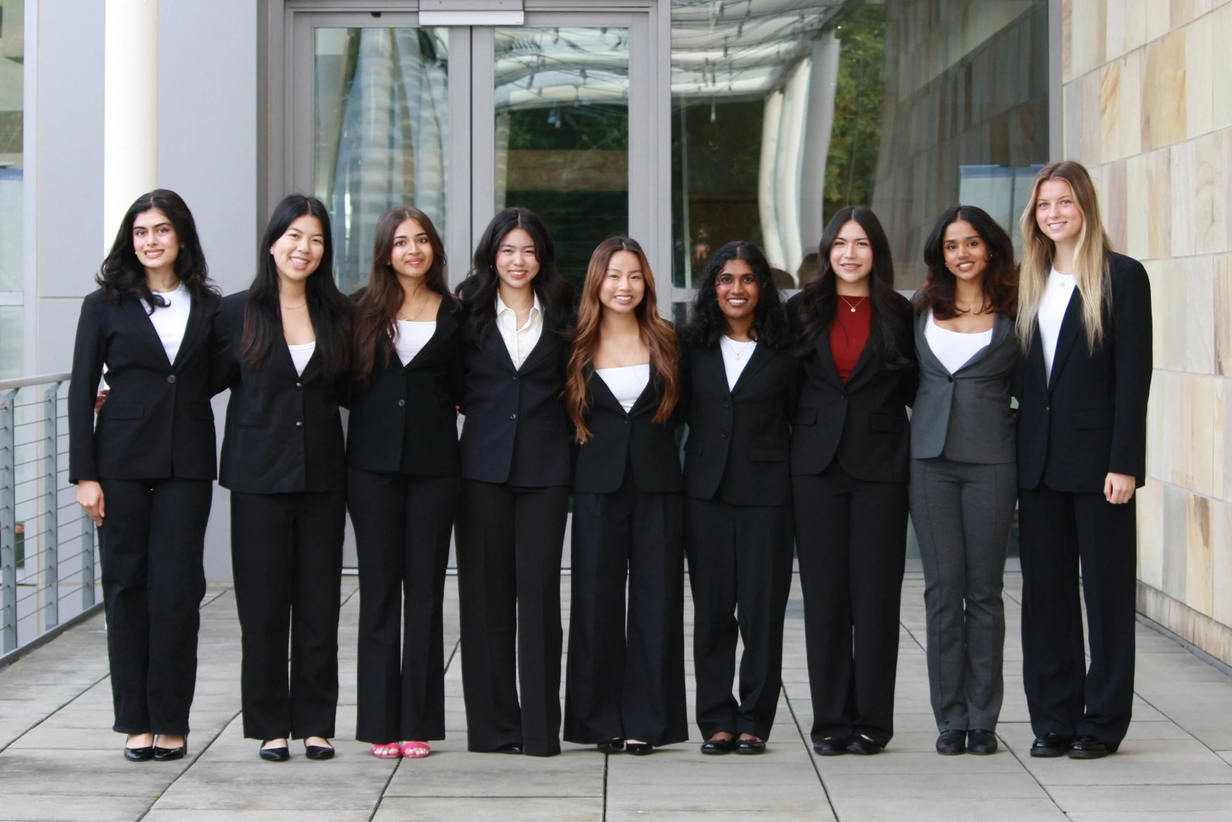 From Left to Right: Aaina Kapur, Kaylie Huang, Aashreeti Deo, Arianna Kim, Grace Kuang, Avena Dunsford, Alyssa Mendoza, Diya Simha, Sutton van Dyk